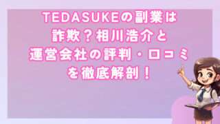 副業TEDASUKEの副業は詐欺?相川浩介と運営会社の評判・口コミを徹底解剖! 皆さんこんにちは!河口です! 副業や投資の世界には、甘い言葉で人を惹きつける案件が数多く存在します。 その中... 2025.04.23副業