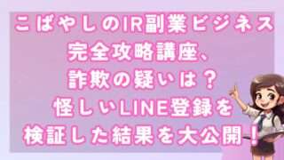 副業こばやしのIR副業ビジネス完全攻略講座、詐欺の疑いは?怪しいLINE登録を検証した結果を大公開! 皆さんこんにちは!河口です! こばやしが提供する「IR副業ビジネス完全攻略講座」についての調査を行いました... 2024.11.26副業