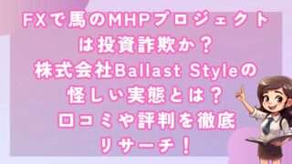 副業FXで馬のMHPプロジェクトは投資詐欺か?株式会社Ballast Styleの怪しい実態とは?口コミや評判を徹底 リサーチ! 皆さんこんにちは!河口です! 令和時代に入り、投資に関心を持つ人々が増えています。 特に自動... 2024.07.23副業