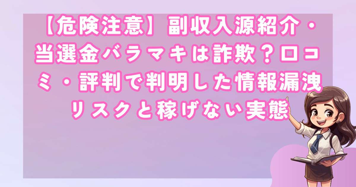 今回は、副収入源紹介・当選金バラマキの実態について、口コミや評判をもとに徹底的に検証します。
