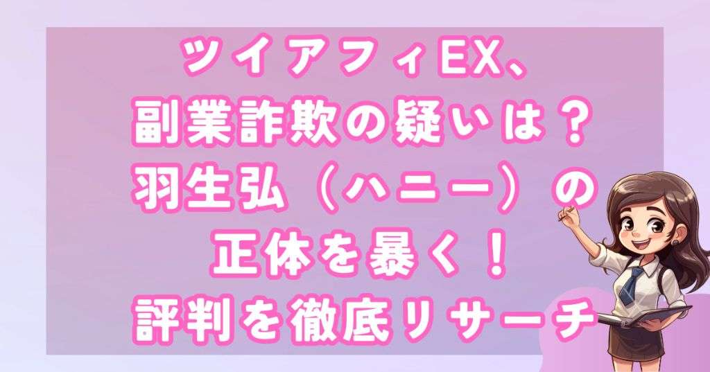 ツイアフィEXについて羽生弘(ハニー)氏が関与することを調査しましたが、その具体的な仕組みや仕掛け人の詳細情報は明記されていません。