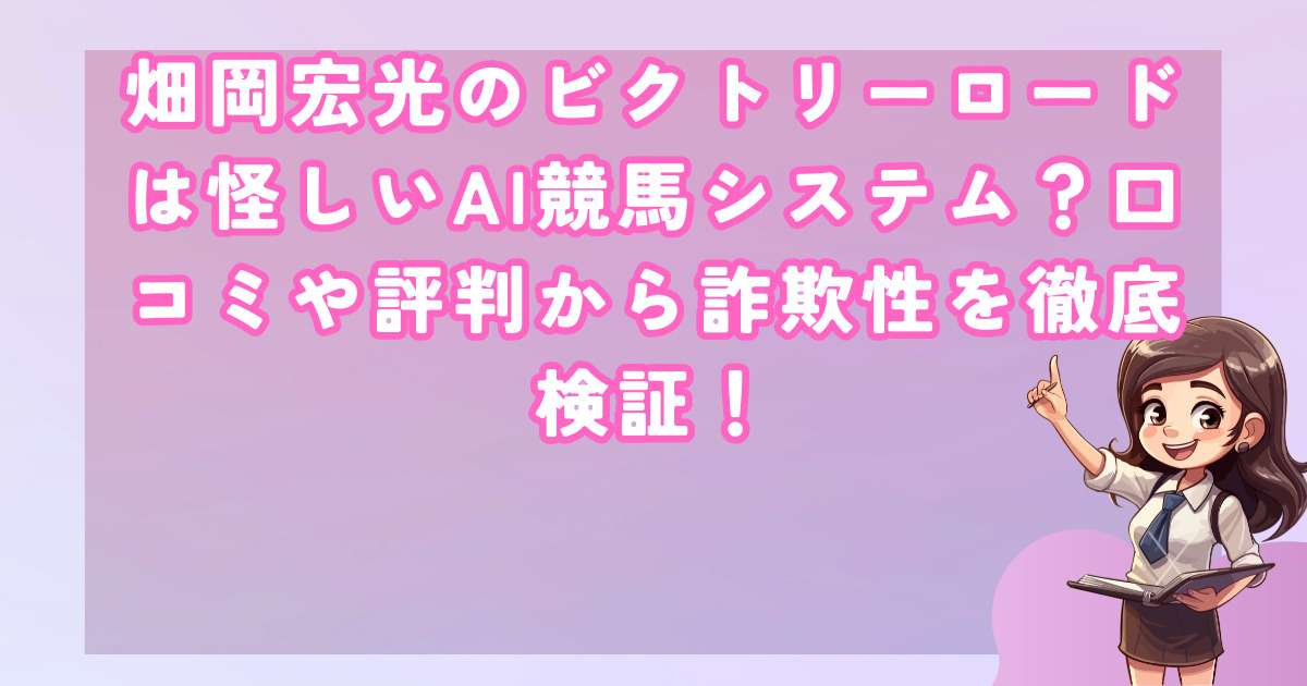 畑岡宏光が手がけるビクトリーロード(VICTORY ROAD)は、AI競馬システムを謳った怪しげな副業案件として、インターネット上で大きな注目を集めています。