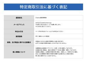 このような特商法の表記は悪質なオファーによくある特徴でもあるため、くれぐれもご注意ください。