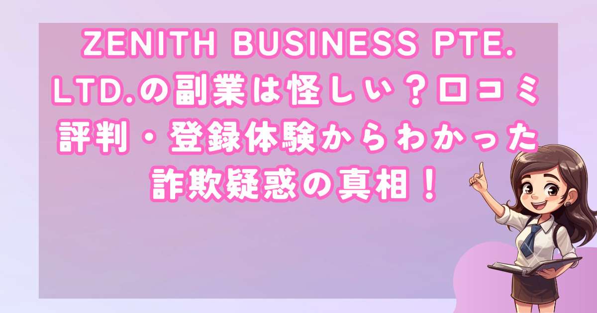 最近、ZENITH BUSINESS PTE. LTD.という企業が提供する副業案件が注目を集めていますが、その実態には多くの疑問符が付きます。
